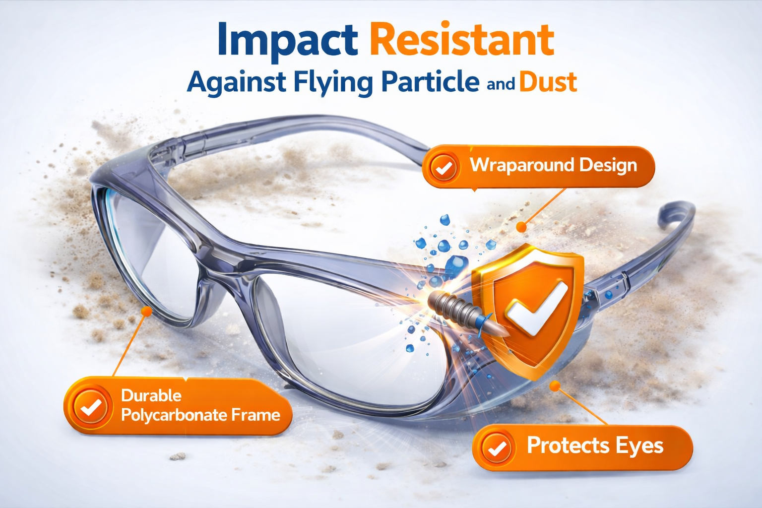 Engineered for industrial safety, this prescription safety eyewear frame helps protect eyes from dust, debris, and flying particles. Its sturdy construction and side shield design make it suitable for manufacturing units, workshops, and construction sites where reliable workplace eye protection is essential.