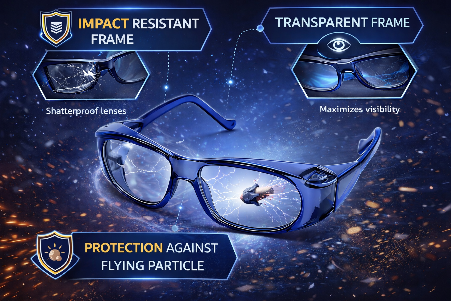 - Protective eyewear design compliant with workplace safety needs