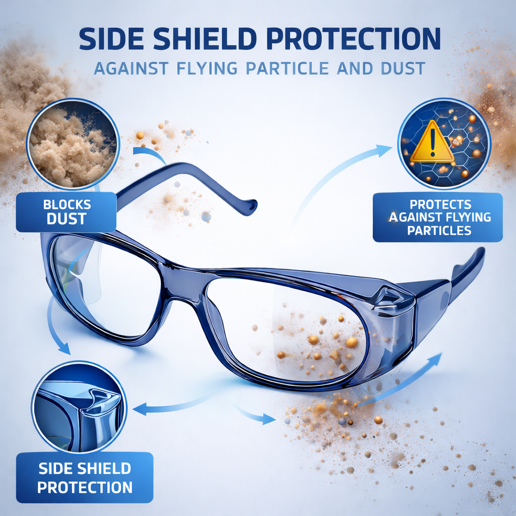 The ergonomic design ensures a secure and comfortable fit, while the clear side shields provide additional protection against dust, debris, and flying particles. Safety spectacle frame supports single vision, bifocal, and progressive prescription lenses,you can change lenses as per your prescription eye power making it suitable for a wide range of industrial and professional applications.Comfortable safety glasses for women and men, available in prescription and non-prescription styles with approved impact protection.